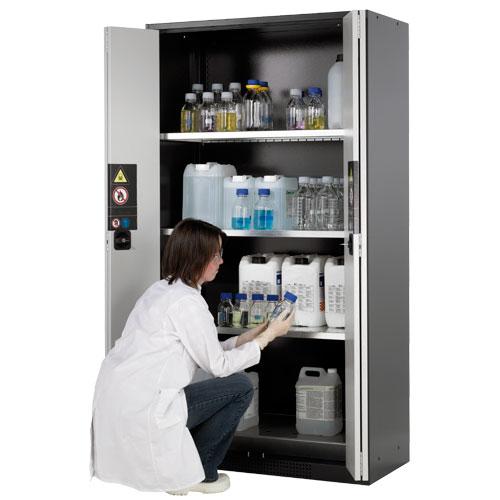 - Les armoires de sécurité pour produits chimiques corrosifs